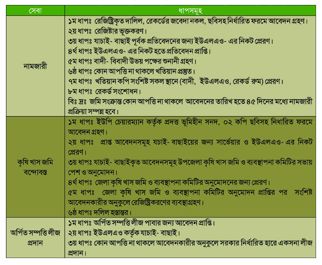 উপজেলা ভূমি অফিসের সেবার ধাপ সমুহ